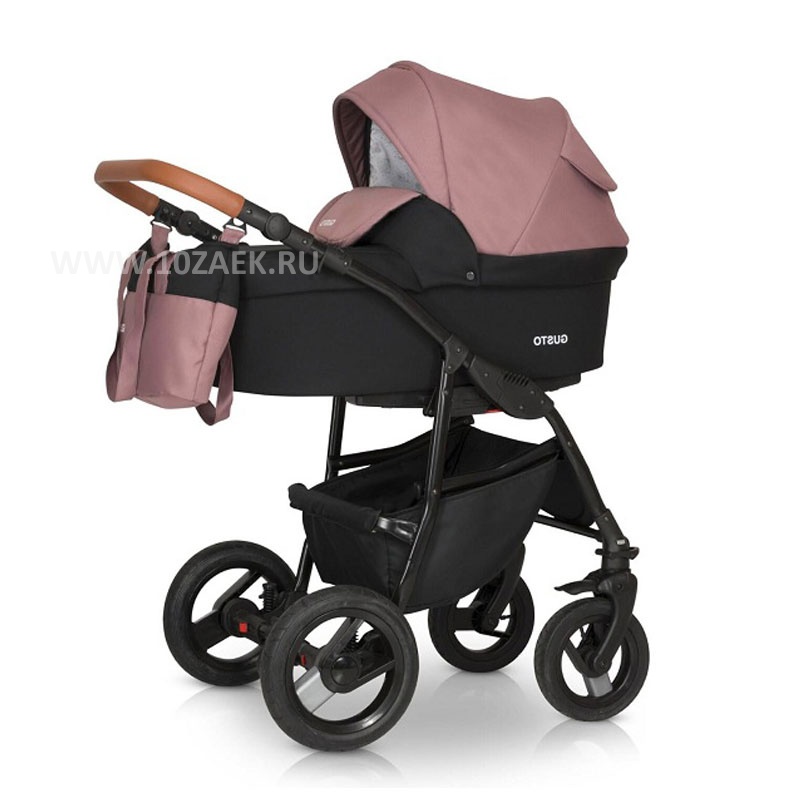 Gusto это оригинальный дизайн и интересное сочетание различных тканей. Управлять такой коляской будет очень удобно и легко, ведь у коляски всепроходимые надувные колеса, передние из которых поворотные.