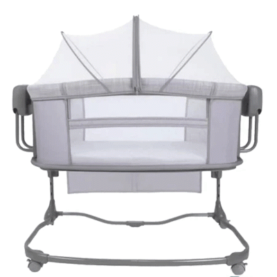 Колыбель может быть совмещена с любыми кроватями. Высота регулируется в 3 положениях, а для легкого доступа к ребенку боковина опускается.